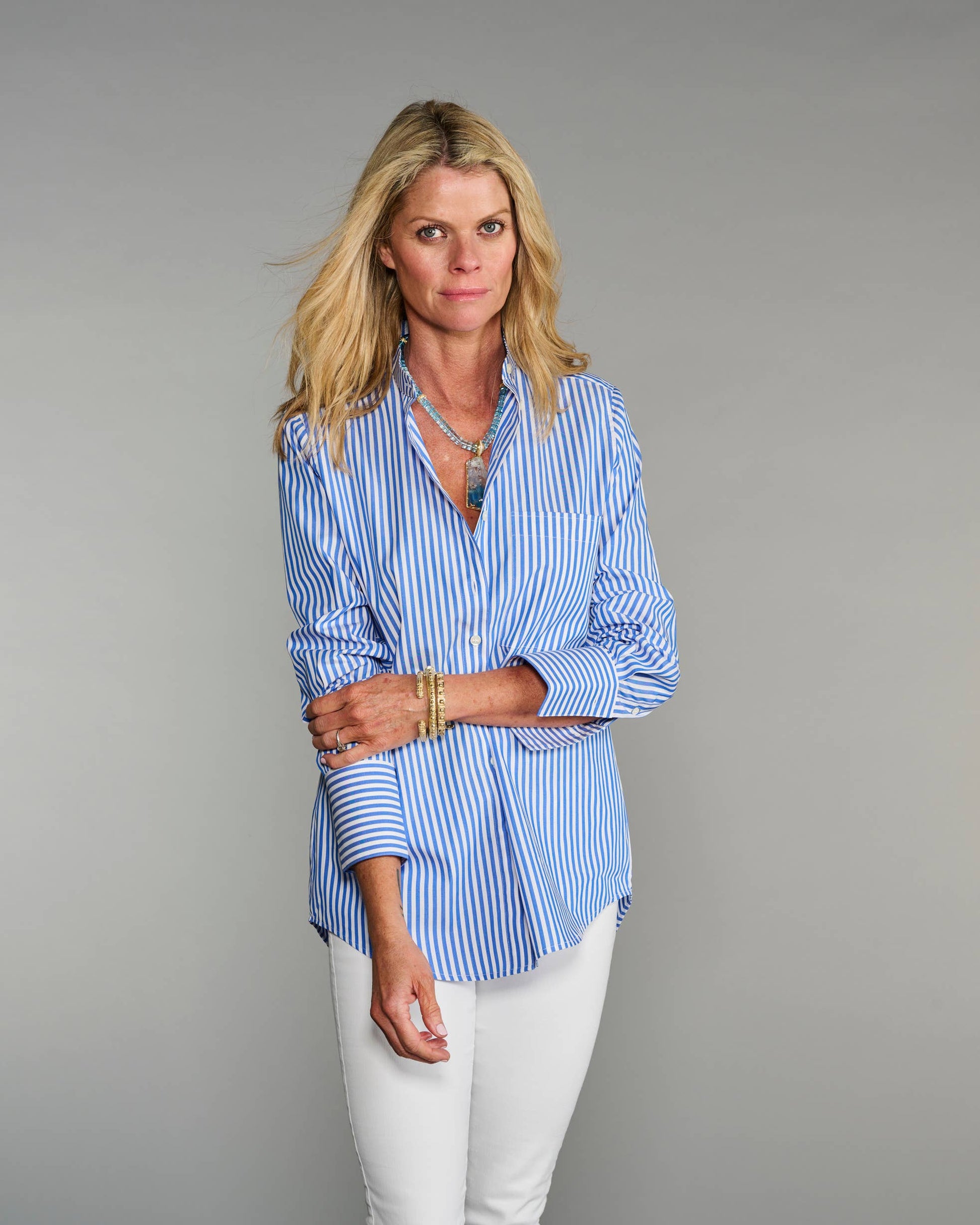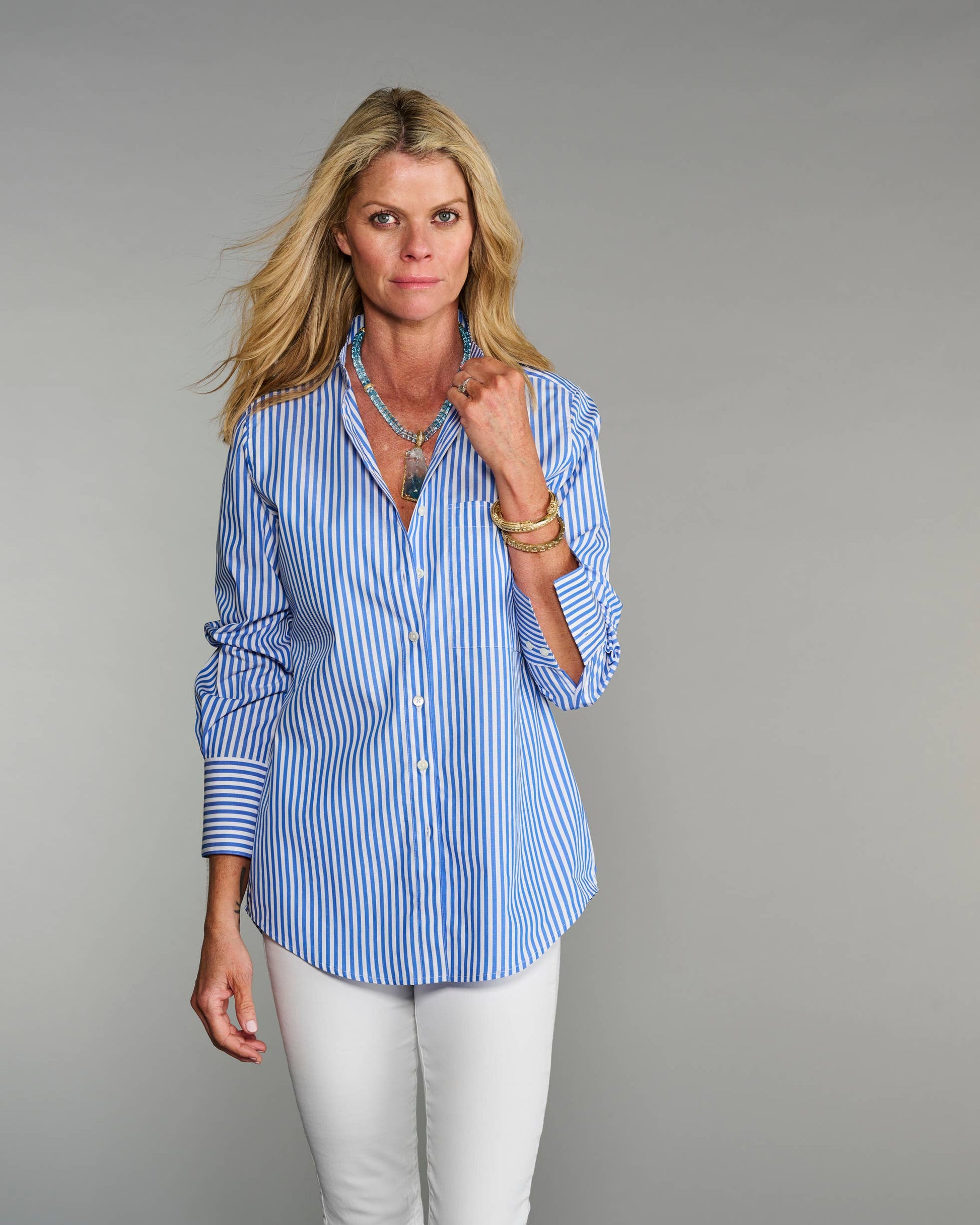 Love our boyfriend shirt, The Mod? If you prefer a less oversized boyfriend-style shirt, check out The Mod II, created with the very same dimensions but with a band-style collar.